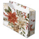 Lägg till gnistra till din helgdag-ge presentväska med den här fantastiska, röda julklappen i blommigten och guld. Den pulserande röda bakgrunden kompletteras på ett utmärkt sätt av en komplex blommigt som skisseras i skuggande faux guld glitter och som skapar ett lyxigt och svalt utseende. Perfekt för Julklapp, julfester eller speciellt firande är den här presentpåsen designad för att dina gåvor ska skina. Vare sig du klappar till nära eller kära, så tillför den här väskan som fångar öga en liten elegans och helgdag glädje. Få presenter att stå ut den här säsongen med den här vackra rödhåriga och guld-blommigtens presentväska!