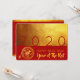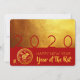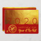 Modern design med gyllene struktur-bilder med stora 2 020 i rött + liten papper-klippning av Råtta + Råtta-ideogram med gult GOTT NYTT ÅR och Råtta år mot röd bakgrund. Utforma ett platta inbjudningskort för vågrät med röd bakgrund på baksidan och text som gör att kinesiska nyårsjubileet Party kan anpassas. Du kan enkelt ändra text (teckensnitt, färg, storlek och placering) genom att klicka på anpassningsknappen. Matchar hälsningskort, vykort och mer... Perfekt för ett tidlöst och modernt kinesiskt nyår Råtta 2020.
