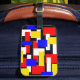 Röd, Gult, Svart och Blåfärgad geometrisk färg, Gult och blåa geometriska block på en designad bagagetagg med svart bakgrund. Av celeste@khoncepts.com #geometricdesign