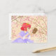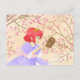 En söt prinsessa i lila klänning med mandelfärgad blommar mot bakgrunden.Färger prefekt för barnens rum.Hon är blankt och leende och kommer att göra dina dagar mer magiska. För älskare av företag och all rosa och blommar