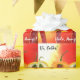 Fortfarande lever tre röda chilipaprika som bär sombrerors av citron och tangerin mot den texturerade bakgrunden till hett och solig mexikansk dag. Svällning papper. Du kan ändra eller ta bort malltexterna Hola, Amigo! och Hi, Folks!