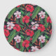 Röda hibiscus, orkidéer, tropiska vattenfärger. stor klocka
