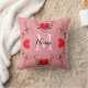 Röda hjärtan på en rosa kudde med svart rulle, monogram och namn i mitten, kudde. Design - HAMbyWhiteGlove aka HAMbWG. Matchande överlakan och kuddfodral säljs separat