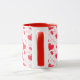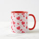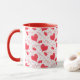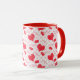 Röda hjärtan, text, "kärlek du", rött och vitt. mugg