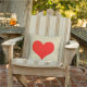 Tryckt med stort rött hjärtmönster på glittrande guldfärgad bakgrund.