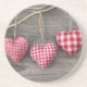 Röda hjärtor på träbord underlägg