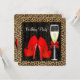 Kvinnas röda högklackade skor och champagneglas röd leopard födelsedagsfest inbjudan. Denna vackra röda högklackade skor leopard födelsedagsfest inbjudan kan enkelt anpassas genom att lägga till dina evenemangsuppgifter, typsnitt, teckenstorlek och färg samt formulering.