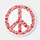 Små, medelstora och stora röda hjärtan i form av ett fredstecken.