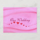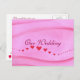 Färgning av olika stora hjärtan i rött, på en bländad rosa bakgrund, skrivs ut på anpassade vykort för bröllopsinbjudan. Texten kan enkelt anpassas till mallformulären.