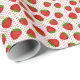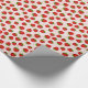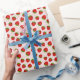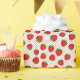 Omslagning papper i ett utspridt mönster av röda jordgubbar på en röd och vit prickbakgrund