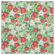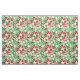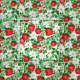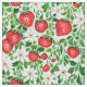 Denna tyg har röda jordgubbar, vita blommor och gröna blad.