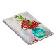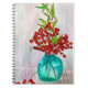 Från en original akvarellmålning av konstnären Sacha Grossel av röda julbär i en turkos vas stilleben finkonst. Röda och gröna julfärger detta vackra färgrika glada konstverk gör en vacker present när som helst på året.