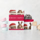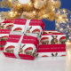 Röda julbulldoggar som slår in papper presentpapper