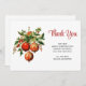 Tackkort med en vintageillustration. 3 röda julgranskulor omgivna av grön jullycka och bär. Retro cool.
