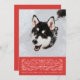 Originalillustration vinter julhagtorn blad och bär i kontur stil med redigerbar hälsning och område för meddelande på baksidan eller lägg till fler foton som önskat. Alla färger är anpassningsbara. Uppställning med din hunds foto men redigera texten för vad som helst.