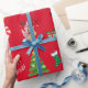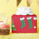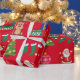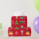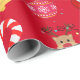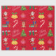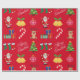 Röda julikoner och dekorationer med God jul inslagna pappert. Den här presentfigurationen har tomten, presenter, renar, Julgran, lager, godis, bauble och julklapp klockor. Du kan redigera om du vill ändra bakgrunden från rött till valfritt färg.