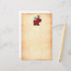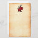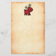 Papperi med en röd julrenillustration. Festiv och söt. Bakgrunden är en digital återgivning av parchment papper.