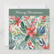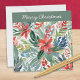 Ett vackert och elegant julkort, med en färgrik illustration av röda julstjärnor i akvarellstil. Full av botanisk charm, detta högtidskort är idealiskt för att skicka festliga hälsningar med en blomsterrik touch.