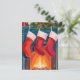 Röda julstrumpor Eldstad Vattenfärg Jul Postkort