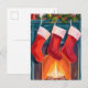 Röda julstrumpor Eldstad Vattenfärg Helg Vykort