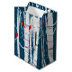 Röda kardinaler sitta i vit björk träd med snöflingor mot bakgrund av mörk blått himlar, fullt och snöflingor. Himlar färg kan ändras.