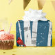 Röda kardinaler sitta i vit björk träd med snöflingor på mörk blått bakgrund i himlar och snöflingor. Himlar färg kan ändras.