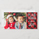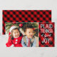 Dessa roliga fotofirande semestkort har röda och svarta rutor och stilren typografi med texten "Karstöjder med stor glädje!"