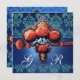 RÖDA KORALLROSA, AKVABLÅ GULD DAMASK MONOGRAM INBJUDNINGAR