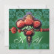RÖDA KORALLROSOR, GRÖNA BLÅ SVARTA DAMAST-MONOGRAM INBJUDNINGAR