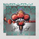 RÖDA KORALLROSOR, SVART GRÖN VIT DAMASK MONOGRAM INBJUDNINGAR