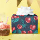 Röda körsbär på mörk blått förpackning papper presentpapper