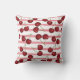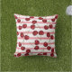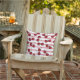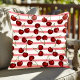 Denna sommarens utomhuskudde har ett färgrikt mönster av röda körsbär på en rosa randig bakgrund.