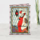 En modig kvinna i en festiv röd klänning kasserar Julgran för en hon just fick från älskare i detta julkort med en illustration som Helena Dryden gjorde inför måndagens täckmantel av Vogue 1921.