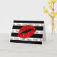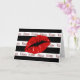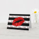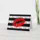 Röda kyssläppar med svart-vita ränder och texten kyssar välkomstkort. Sött tomt välkomstkort som passar för födelsedagar, Alla hjärtans dag, årsdag eller bara så!
