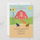 En söt röd ladainbjudan perfekt för ett barns födelsedagsfirande på gården. Tillsammans med den röda ladan finns ett staket med vita stolpar och en inhägnad med två kor och en gammal väderflöjel. (<a href='http://www.freepik.com/free-vector/barn-in-a-landscape-with-farm-animals_849597.htm'>Designad av Freepik</a>). Kortet är lätt att anpassa med din text, teckensnitt, typsnittsfärg, pappersform och val av sex papperssorter.<br/><br/>Inte exakt vad du söker? Alla våra produkter kan utformas för att passa dina behov utan extra kostnad.<br/><br/>Kontakta oss helt enkelt på heartfelthelper@gmail.com<br/><br/>Koordinerande produkter tillgängliga: Fråga oss!