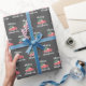 Den röda gåvan lastbil och träd grått God jul som omsluter papper är perfekt för en modern helgdag i stil i vintage. Utformningen har ett klassiskt gammalt rött pickupt lastbil som bär Julgran med ord "God jul" i ett modernt, handskrivet typsnitt på mörkens grått-bakgrund.