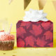 Detta slående in papper presenterar ett mönster av röda höstlönnlöv på en mörkare röd bakgrund.