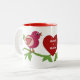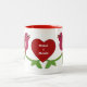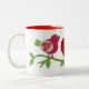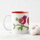 Mugg med söta röda fåglar med hjärtaccenter och text som ska anpassas med namn eller annat meddelande. Söt design för nyfödda, Valentine eller Sweetest Day.