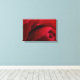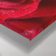 Vackert makrofoto av en röd ros-blommar. Stora droppar från vatten sitter på sina ömtåliga petaler och ge det en ny sommarklocka.