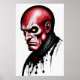 Det här är en porträtt av en rödhårig man med gult ögon. Han bär en svart skjorta. Han tittar direkt på tittaren med ett allvarligt uttryck på hans ansikte. Det här är en AI-skapad konst.