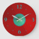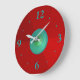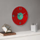 En enkel klocka i röd/beige med en akvagrön blå cirkel i mitten. Komplementfärger som inkluderar siffror som matchar. Finns i fyrkantiga och runda former.