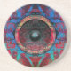 Röda musikhögtalare på en krackad vägg underlägg sandsten