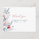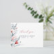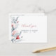 Vykortet har en vacker blommig design med röda och blå blommor på vänster sida. Texten "tack" är elegant skriven med kursiv stil i mitten, med parets namn nedanför i versaler. Den vita bakgrunden får den blommiga designen och texten att sticka ut och skapar en sofistikerad och elegant look som är perfekt för bröllopskort. Denna design är idealisk för par som söker stilfull och minnesvärd bröllopsbrevpapper. Personalisera med dina bröllopsdetaljer och hitta matchande designs i min "DreamHut" -butik.