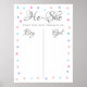 Han eller hon. Vad kommer bebisen att vara? Ett roligt spel för avslöjande av kön med söta blå och rosa hjärtan. Designad av Thisisnotme©