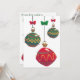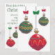 Vintageillustration God jul julfestdekoration med röda och gröna runda hängande glasdekorationer. De är dekorerade med gula dekorativa virvlar, ränder och diamantformer. Klassisk 50-tals kitsch.