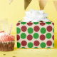 Jul färger röda och gröna i feta polka prickar. Få presenter att sticka ut med retro stil. Modernt knivskarpt mönster. Bakgrundsfärg av tan skapar en något subtil vintage ton. Semesterfärger upprepas i en svag våg över papperet. Enkelt underdrivet design med inslag av livfulla färger. Lämplig för affärspartners och kunder. För presenter till män och kvinnor, vuxna och barn.