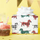 Roligt mönster för Doxie älskare. Röd, grön och vitflanell jackade taxvalpar. Perfekt för jul.