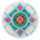 Röd och Grönt Blommigt Ornamental Ceramic Knob. Tidigt 1900-talets majolica-platta stil med en färglös blommigt snabbt mönster i grönt, röd och blå ram.