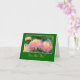 Stora magnifika röda och gula dahlior pryder framsidan av detta grytkort. Anpassningsbar text på framsidan: "hur mår du?" Insidan är för ditt eget ytterligare meddelande tillsammans med en mindre version av framsidans bild.