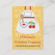 En gullig och retro stilvisitkort med ett röd och vitförkläde med en hjärta på dess fick-, en körsbärsröd appliquedesign och en träsked på ett dubbel körsbär och daisy tonar tonar på gul bakgrund. Dessa personliga visitkortar är perfekta för en bagare, en kock, en kock, ett bageri eller ett cateringföretag. Skräddarsy den till den spelar ingen roll något att säga dig önskar på baksidaen och beklär av kortet. Konstverk© Chrissy H. Studio, LLC. All reserverad rättigheter.